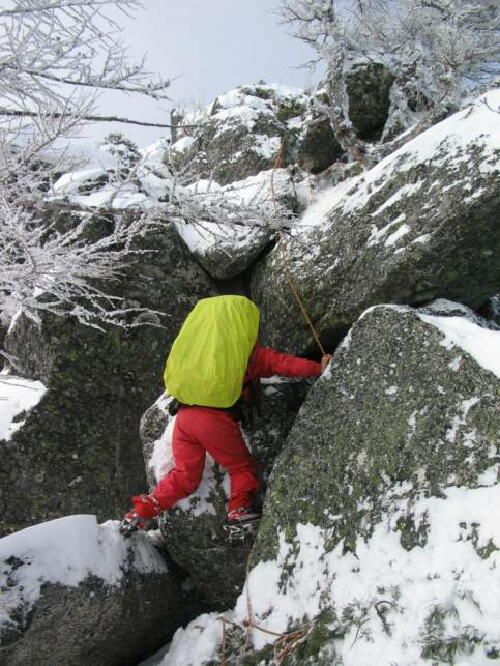 降雪の下部尾根を上る