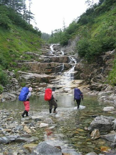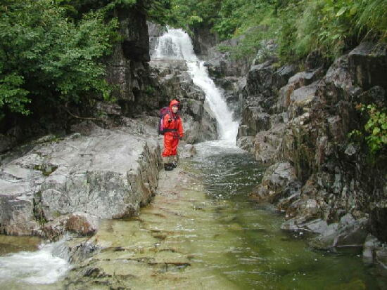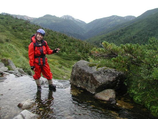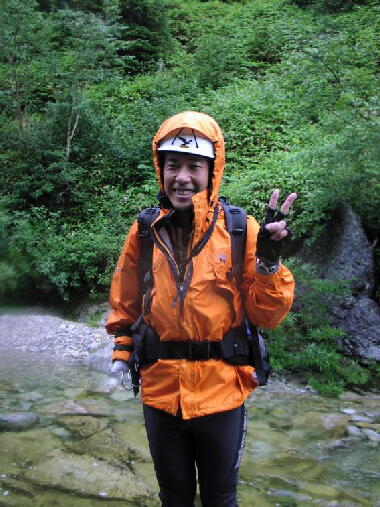 沢2回目の園田、しぶきを浴びて喜ぶ。 |