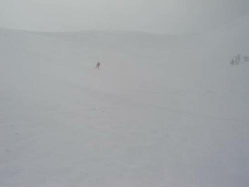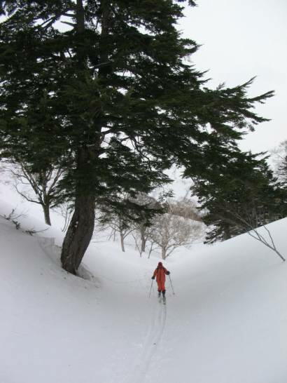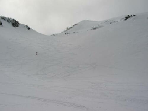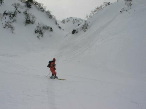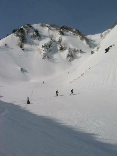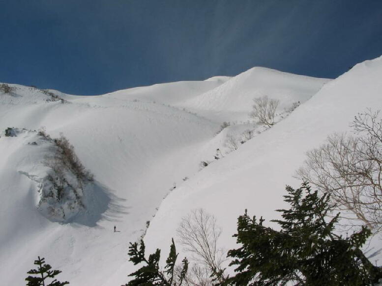 途中の尾根から上部を見る。一番奥が雪倉岳。 |