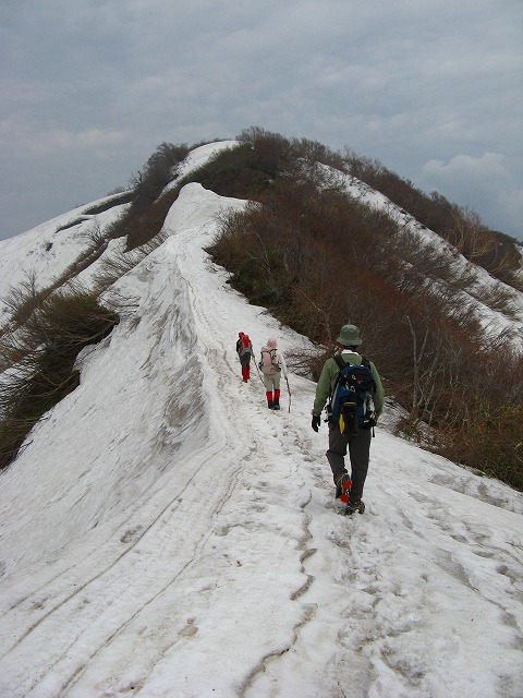 153−29 2009.05.05 糸魚川・鉾ヶ岳(ほこがたけ・1316m) 後藤・N・I・M 山行記録を読む咲いていた花名一覧 ![]() 5日、鉾ヶ岳に向かう ![]() 島道鉱泉登山口 標高約250m 標高差は1066m!! ![]() ![]() 途中の滝 ![]() 菊咲一華(キクザキイチゲ) ![]() エチゴキジムシロ(越後雉子筵) ![]() ナガハシスミ(長嘴菫) ![]() 白根葵(シラネアオイ) ![]() シロハナイカリソウ(白花錨草) ![]() この山は片栗の山だ ![]() 山荷葉(サンカヨウ) ![]() 結構、凄い山なのだ ![]() コシノコバイモ(越の小貝母) ![]() 綺麗ないい花です ![]() 岩団扇 イワウチワ 白が飛んで残 ![]() カタクリの回廊 とにかく凄い ![]() これはMさんが撮影です なかなかのカット ![]() ここでスパッツを ![]() 5月・1300m級の山でこの残雪!! ![]() この花が多かった ![]() 延齢草も多かった ![]() 花園を上 ![]() この手の山で二輪草の群落は初めてだった 標高が低いから?? ![]() これは綺麗な岩団扇 ![]() 猩々袴.(ショウジョウバカマ) も多かった ![]() 岩梨(イワナシ) ![]() 出ました、ここは石楠花があったのです アズマシャクナゲみたいですが、独特の名称が ついていました ![]() 最後の厳しい上り・1 ![]() 厳しい上り・2 ![]() 厳しい上り・3 ![]() ようやく頂が見えた ![]() これで1300mの山です ![]() 厳しい上り・4 ![]() 一等三角点の頂上です 厳しい山でした ![]() 一等三角点 ![]() さあ下山だ ![]() 下山・2 ![]() なかなかいい ![]() 雪椿 ![]() 厳しい山でしたが、いつまでも 心に残る山でしょう 参考タイム 島道鉱泉9:45 頂上13:30〜14:00 島道鉱泉17:00 標高差=約1066m おわり |