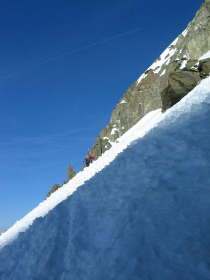 ルートは沢山通るらしく、大きなバケツ(踏み跡)があり全く問題はない。上からドイツ組が何人か降りて来た。上