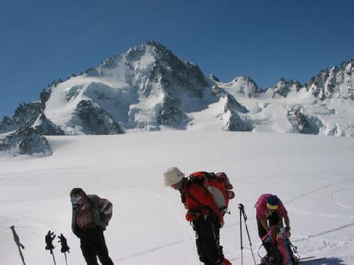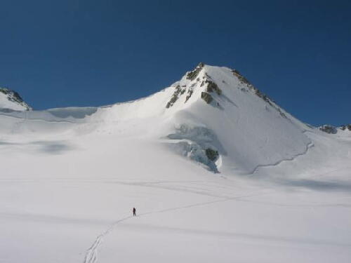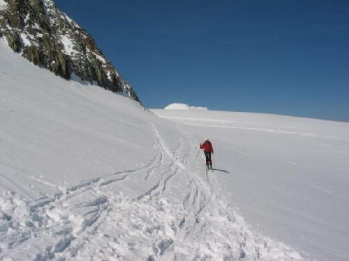 シールをつけ少し滑り再び歩きツーアのコルを目指す。オート・ルートは基本的に氷河から氷河を結ぶ「スキーの