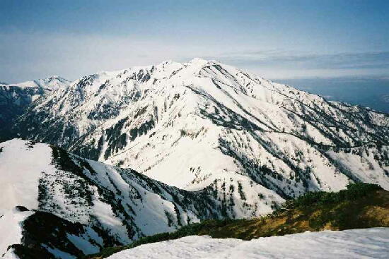 越中沢岳から薬師岳を望む。え
