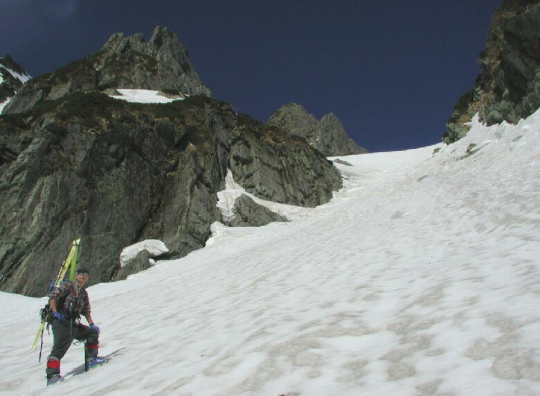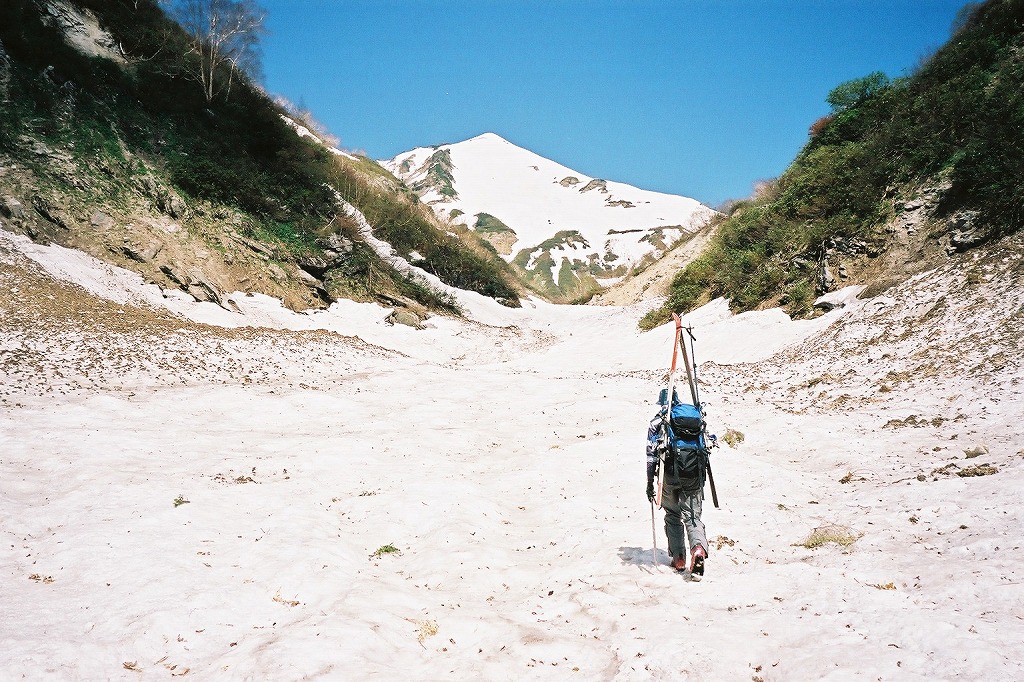 二股から見上げる三ノ窓雪渓。