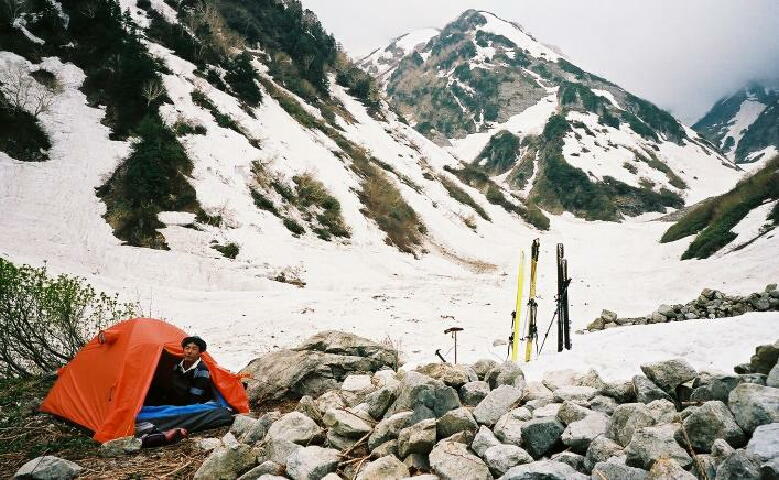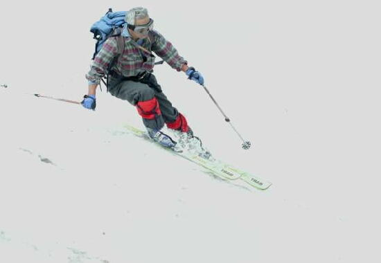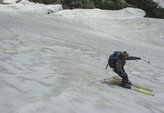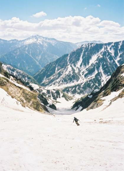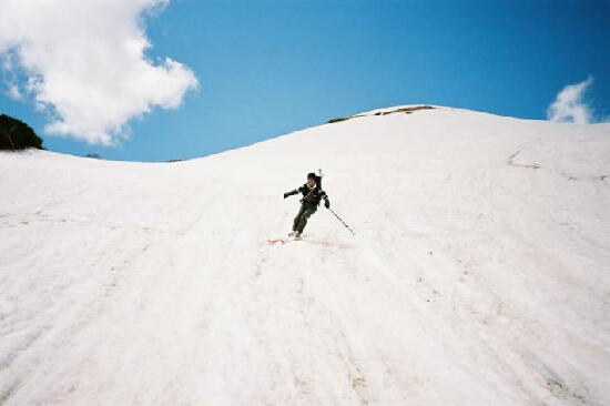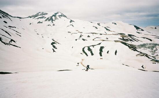 だ。クレバスも開いてて、滑降大