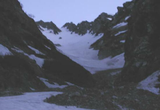まだ夜があけきらない長次郎谷。 |
