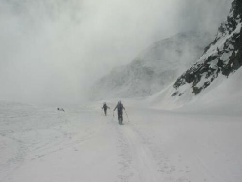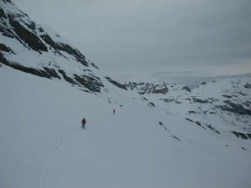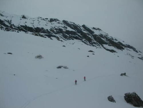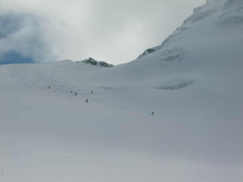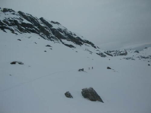 それでも次第に傾斜も落ち、氷河の内院に入っていく。氷河は末端が必ずこのように急傾斜で苦労する。