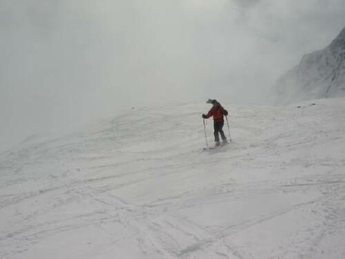 なってしまった。周りは完璧ないい斜面が続く。上からいいスキーで何人か滑ってくる。天気は雲がだいぶ切れ